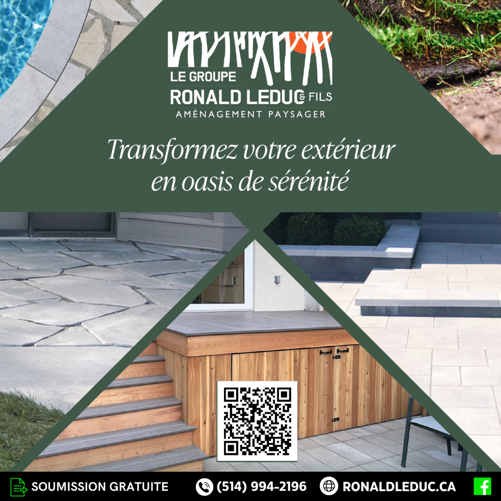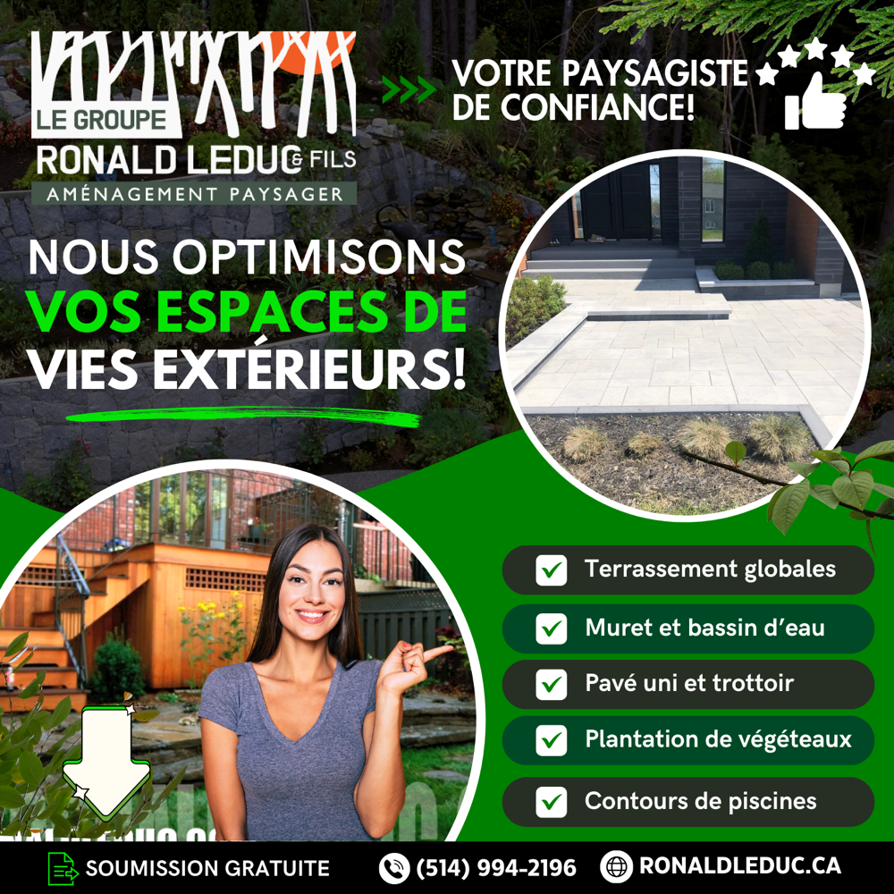 OBTENIR UNE SOUMISSIONSelon Le Groupe Ronald Leduc & Fils, un aménagement paysager se doit d’être beau, fonctionnel et résistant.